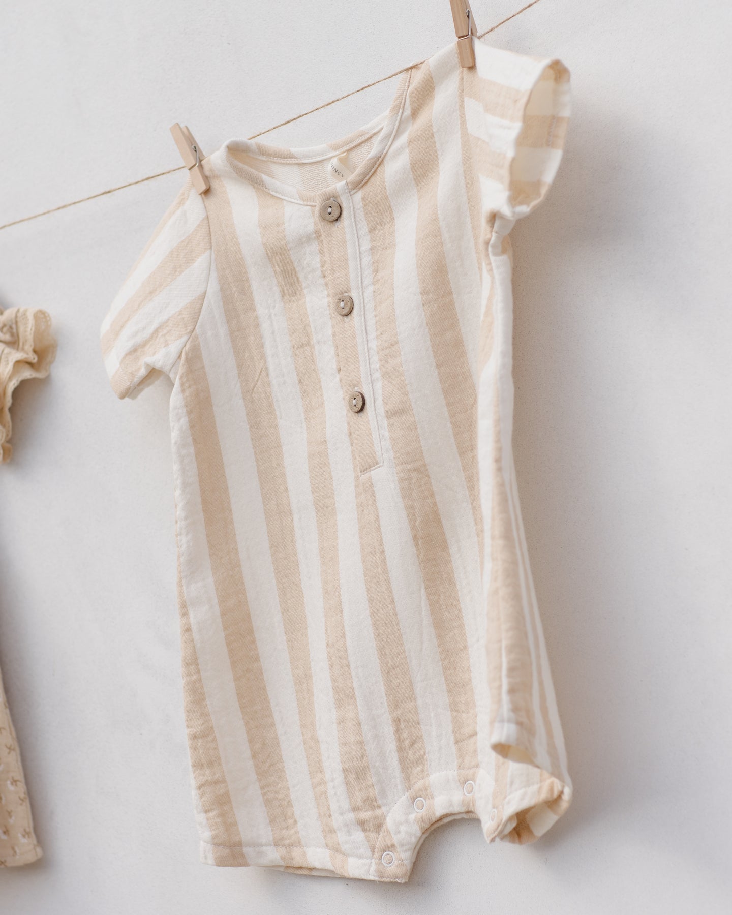 QUINCY MAE Short Sleeve Woven Romper || Summer Stripe