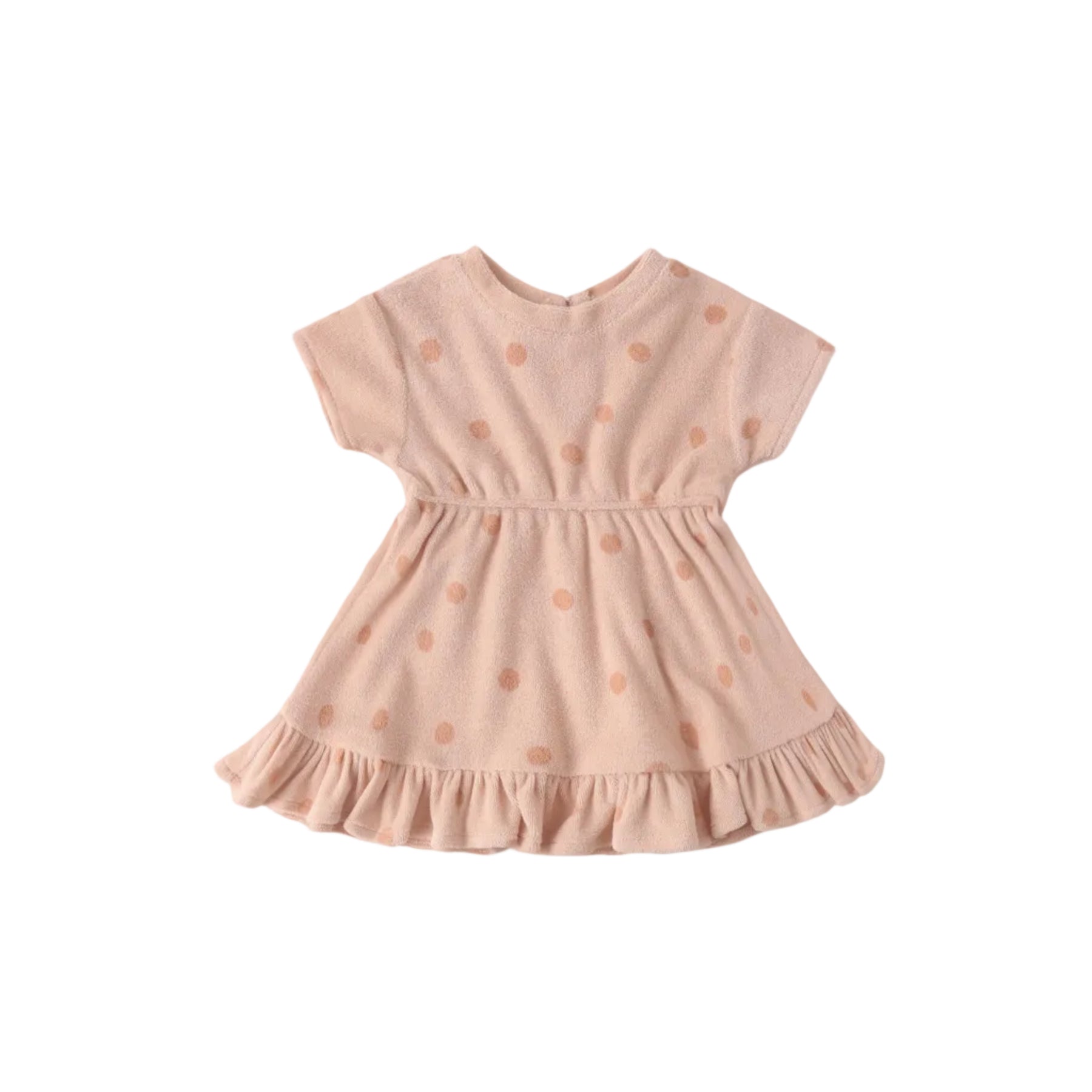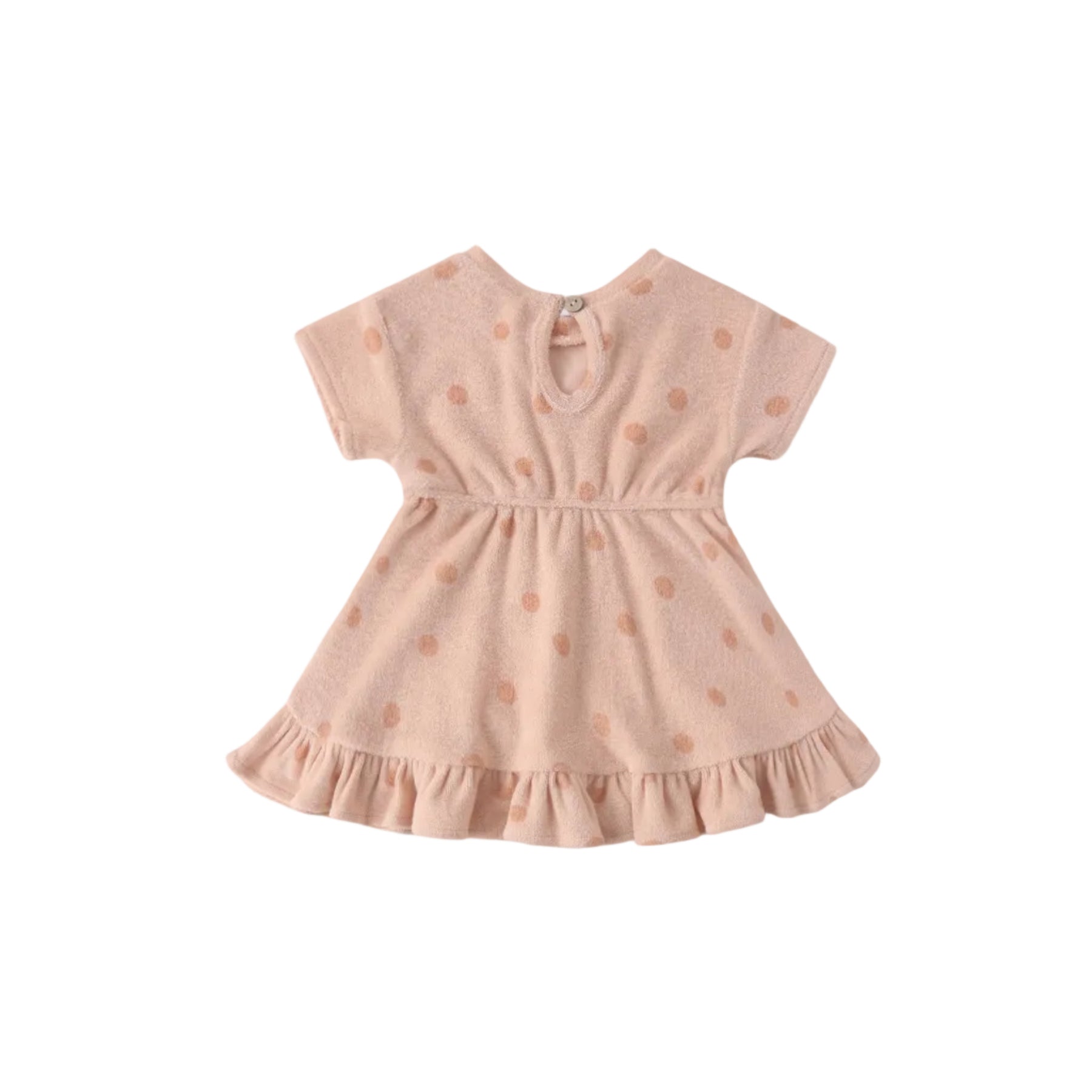 Regular price $50.00This sweet dress made of a terry cloth fabric features ruffle trim, an elasticized waist, and a button keyhole closure for the perfect fit. Coordinating bloomers included with all sizes.