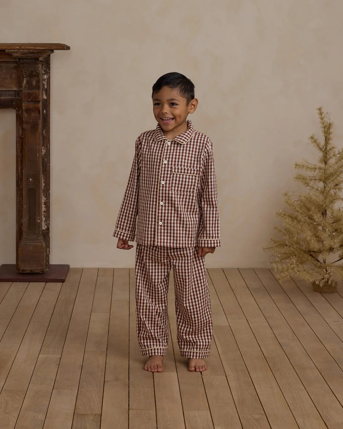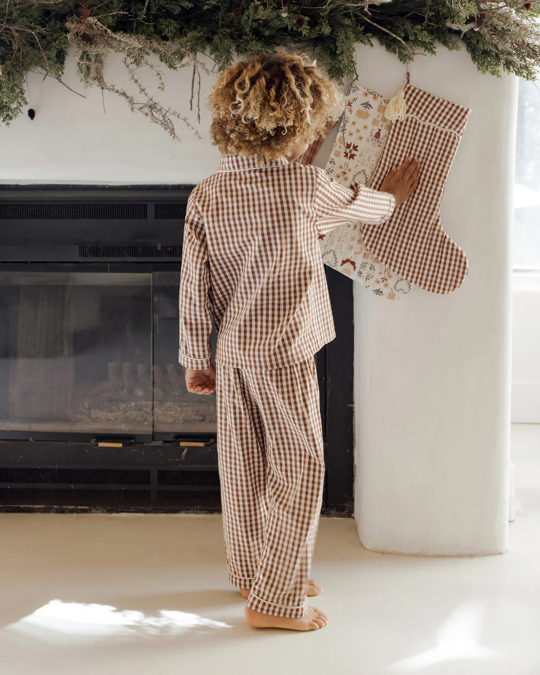 Featuring a 'brick gingham' pattern.