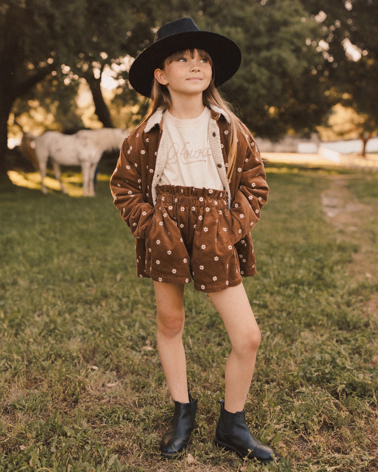 Featuring our 'floral embroidery' on our saddle fine corduroy.