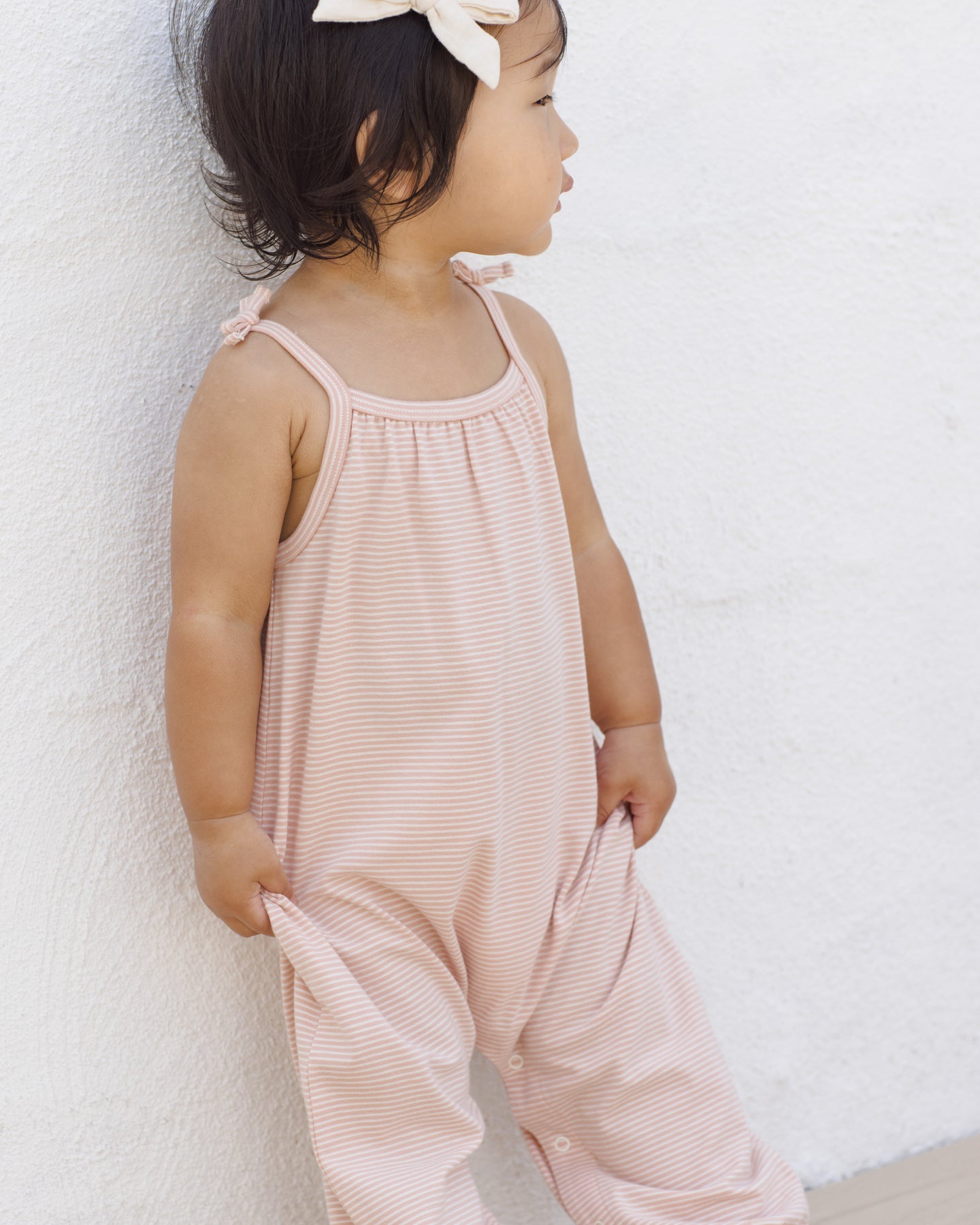 QUINCY MAE Smocked Jumpsuit || Melon Micro Stripe