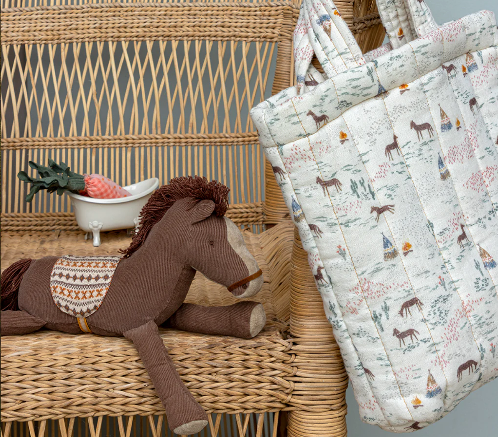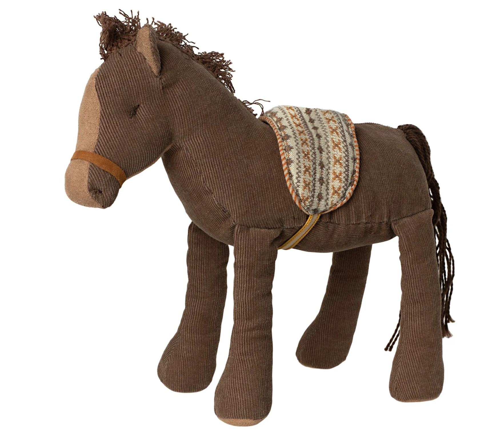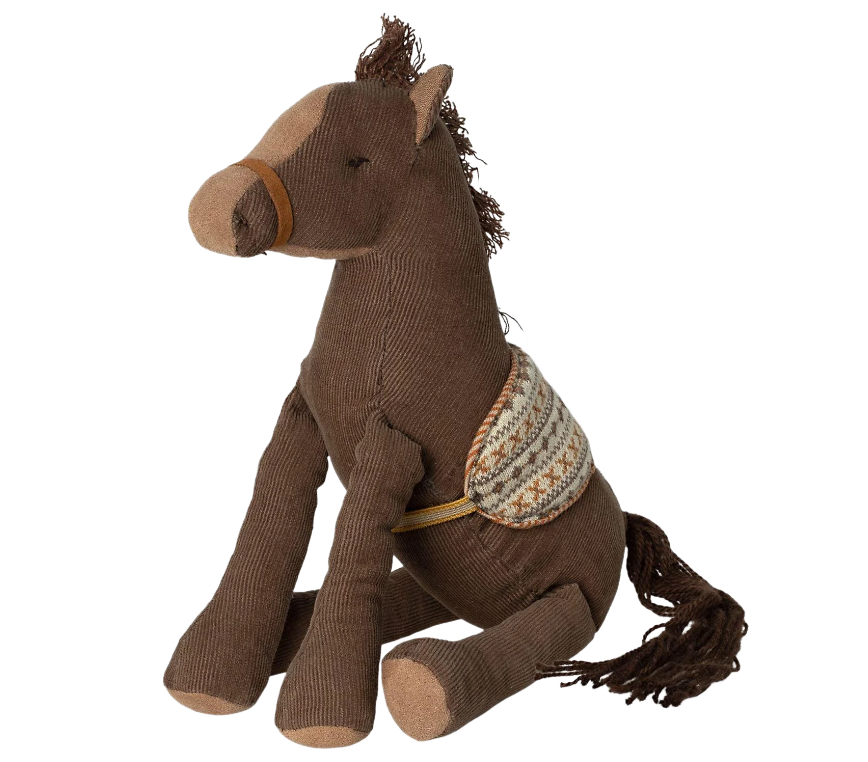 Regular price $30.00The brown pony is made of beautiful soft corduroy and has a harness on the back. Ready to start the adventure of a lifetime?