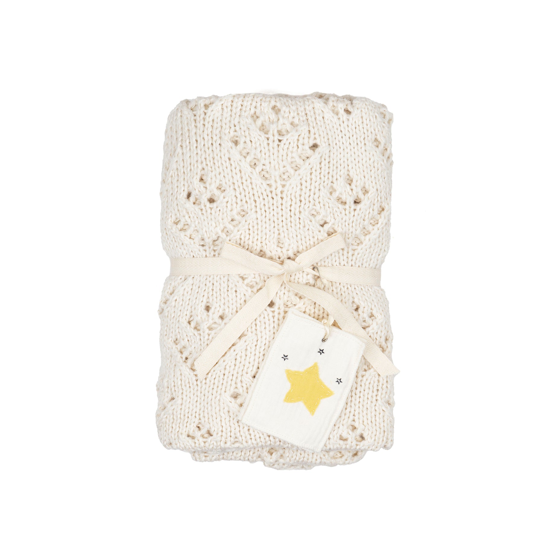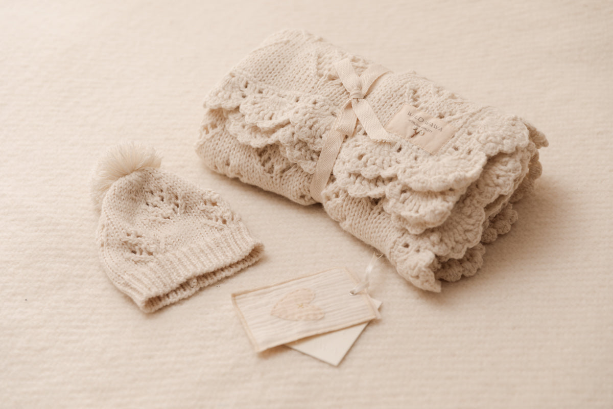 Knitted Blanket W/Crochet Trim in Natural is a sweet, statement-making piece with an elevated feel—perfect for special moments and everyday photos.