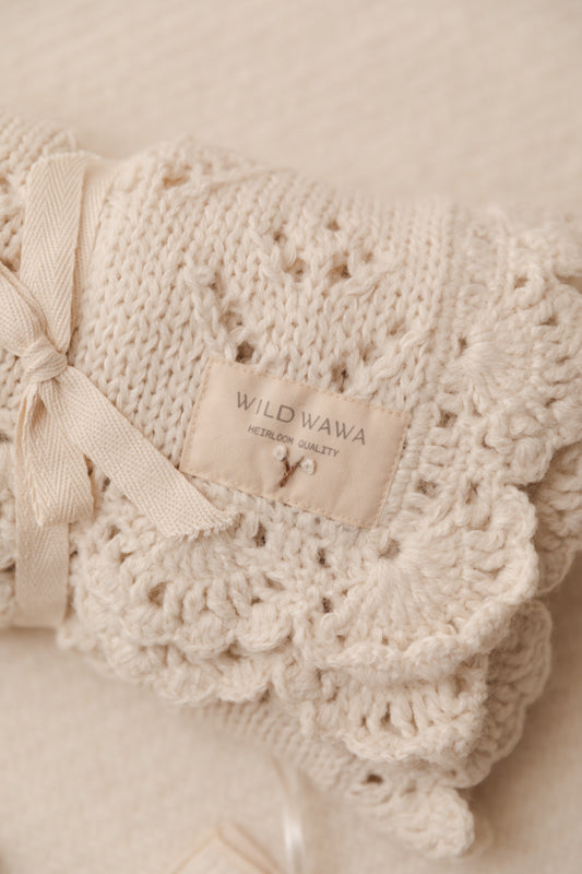 WILD WAWA Knitted Blanket W/Crochet Trim - Natural