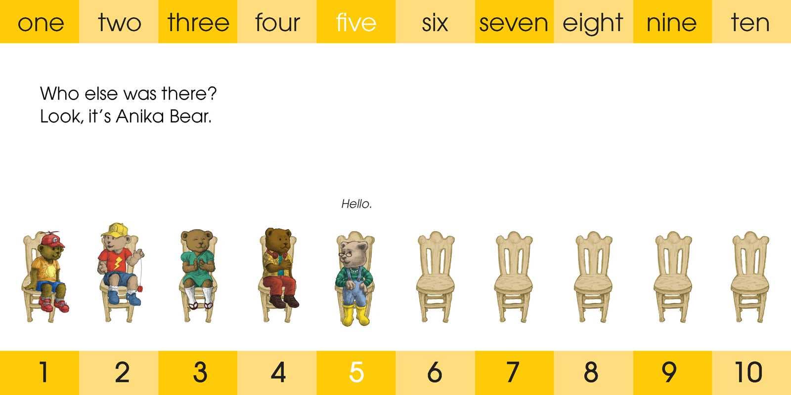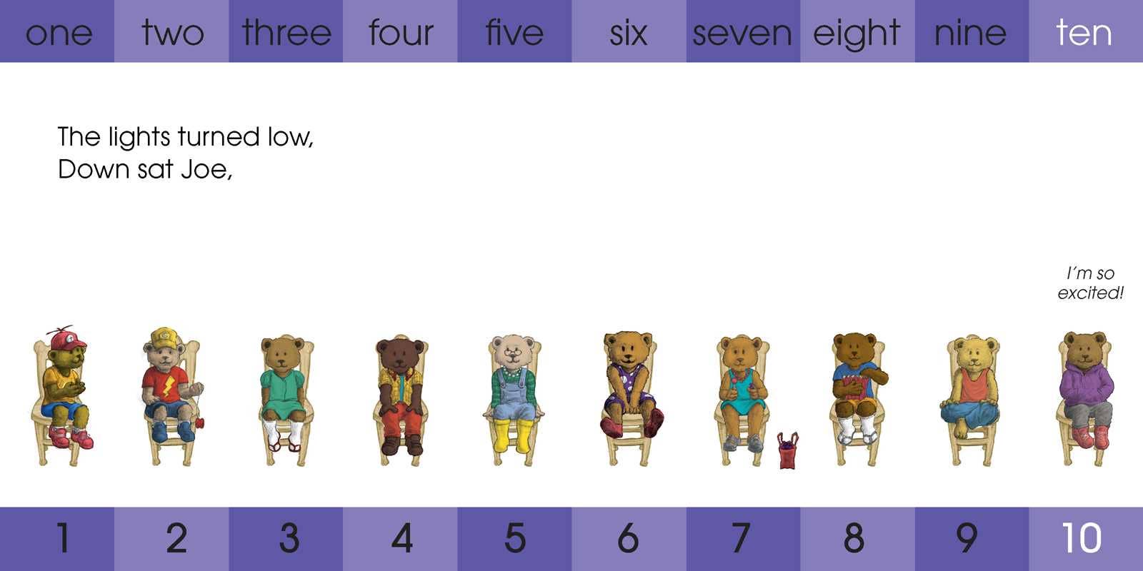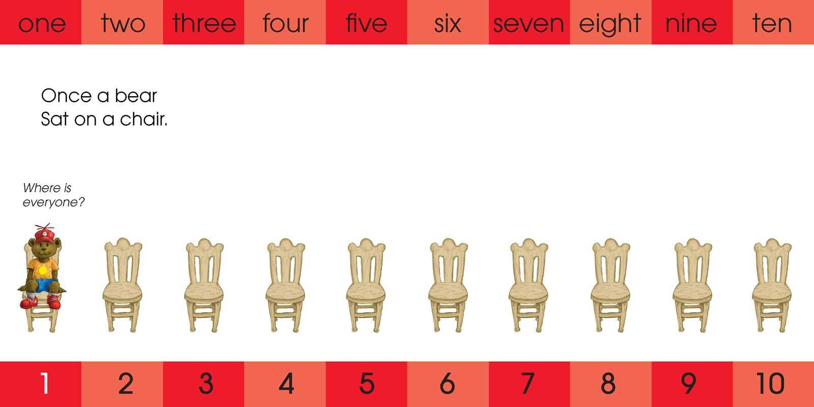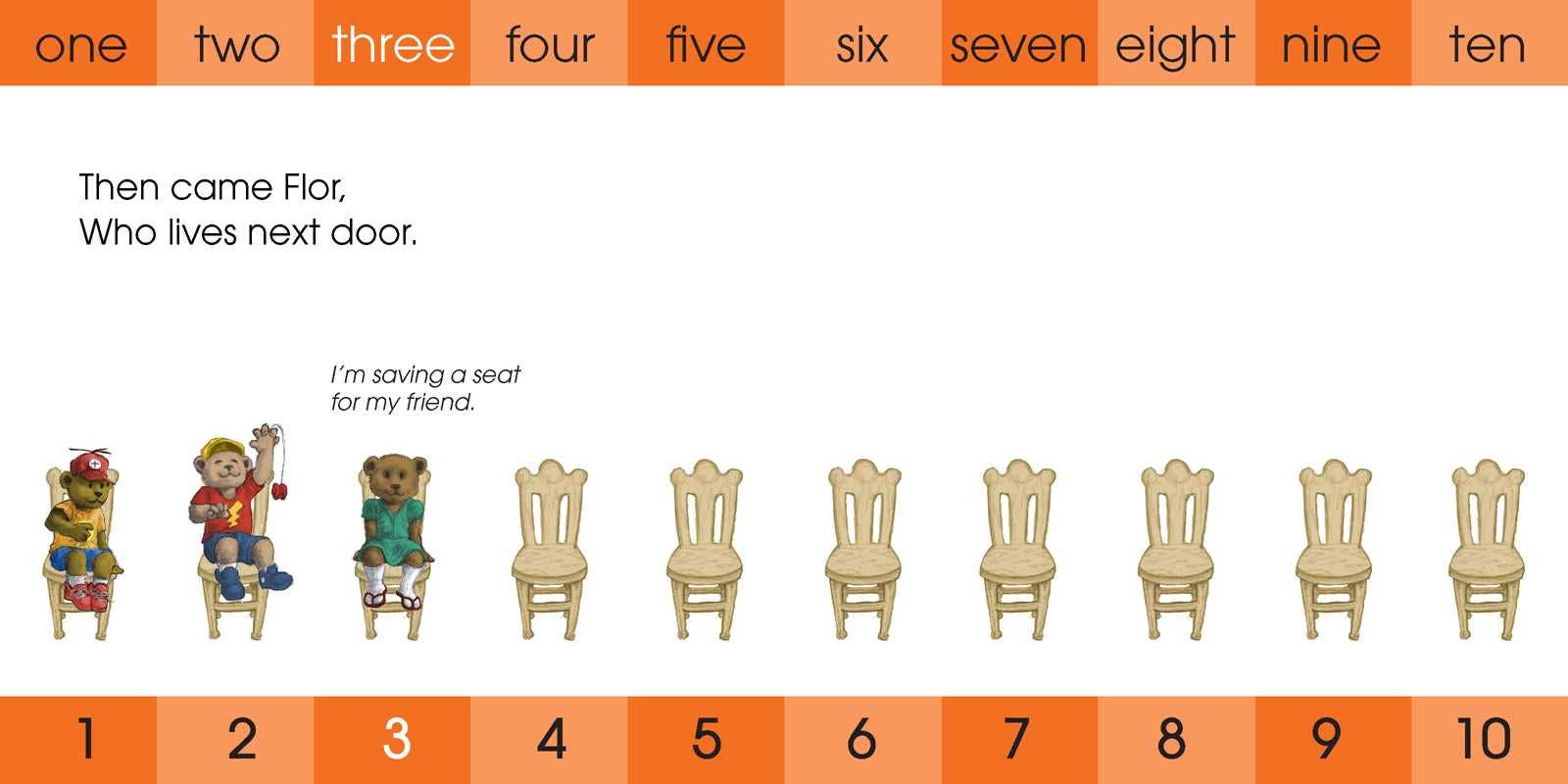 [The Collective Book Studio] “Introducing numbers at an early age has been one of the most important tasks for me as a parent. I want to set my two year old up with a great start in math and this book has been a fun way to learn to count! My kiddos love beautiful illustrations and rhyming in every story—this book piques his interest and keeps him engaged!” —Ciara Evans, @la.bookclub Once a bear sat on a chair. He is soon joined by a furry friend and then, one by one, other playmates follow. Each bear claims a chair as they wait with eager anticipation for what happens next in this sweet counting story. With dynamic rhymes and lively illustrations, this board book offers an engaging premise for young readers to practice their counting and get to know a group of eclectic bear friends. From Ron Atlas, the author of Looking for Zebra and Ten Pigs Fiddling, this timeless book will become a staple in any household with children.