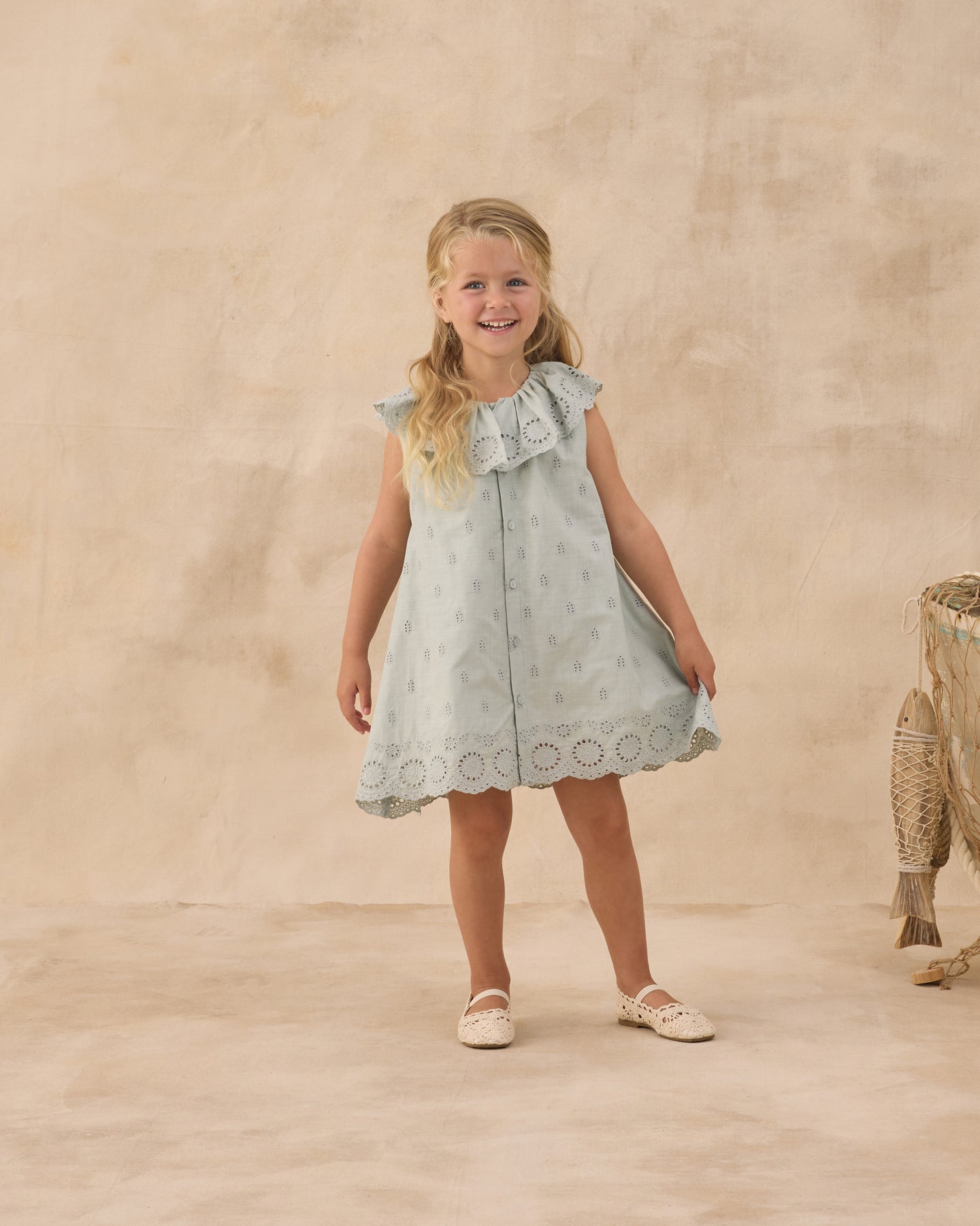 Regular price $96.00Our Rylee + Cru Marina Dress features a charming oversized collar with merrowed scalloped edges and a front button placket for a sweet finish.