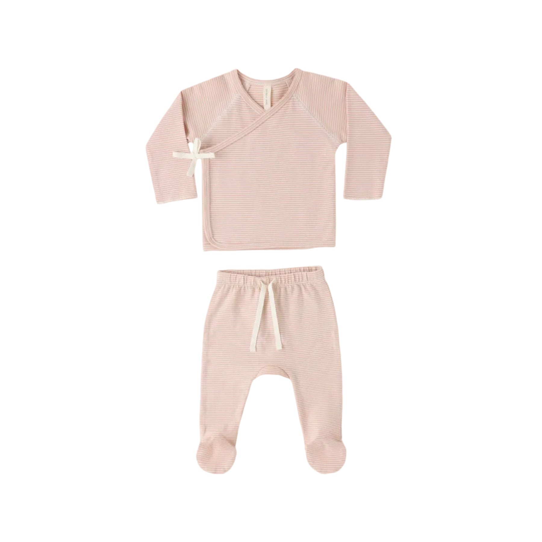QUINCY MAE Wrap Top + Footed Pant Set || Melon Micro Stripe