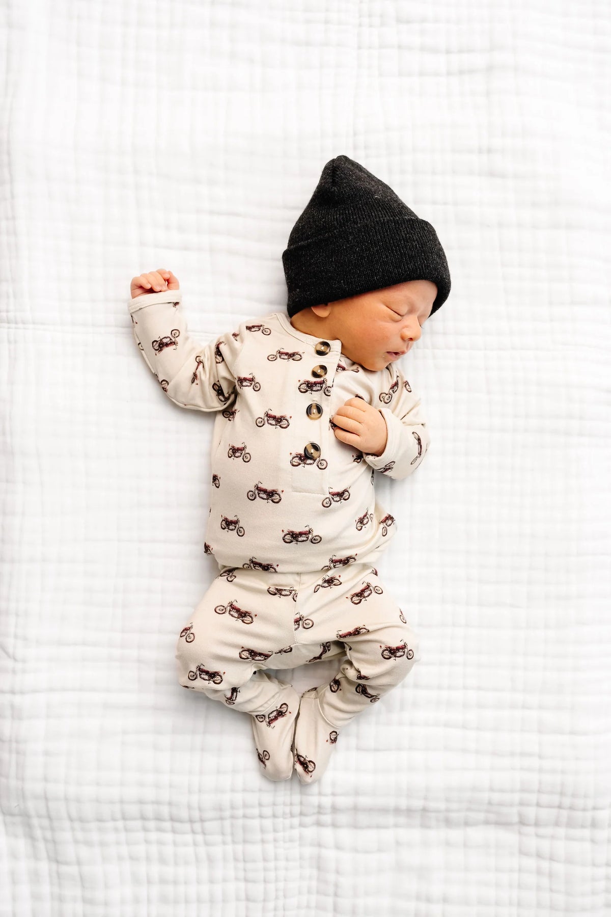 Good things come in pairs and our tops + bottoms are no exception. They’re made from our signature silky-soft material for a stretchy, comfy fit with functional buttons and fold-over waistband for room to grow (or to wear high-waisted). Say goodbye to socks that slip right off with built-in footies (on the newborn size only) to keep those tiny toes warm without the fuss. Unbelievably sweet mixing & matching approved.