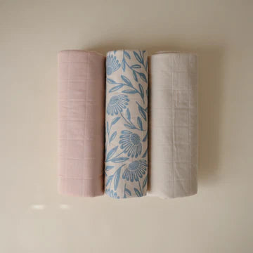 MUSHIE Changing Pad Liner Set - Blue Flowers Combo