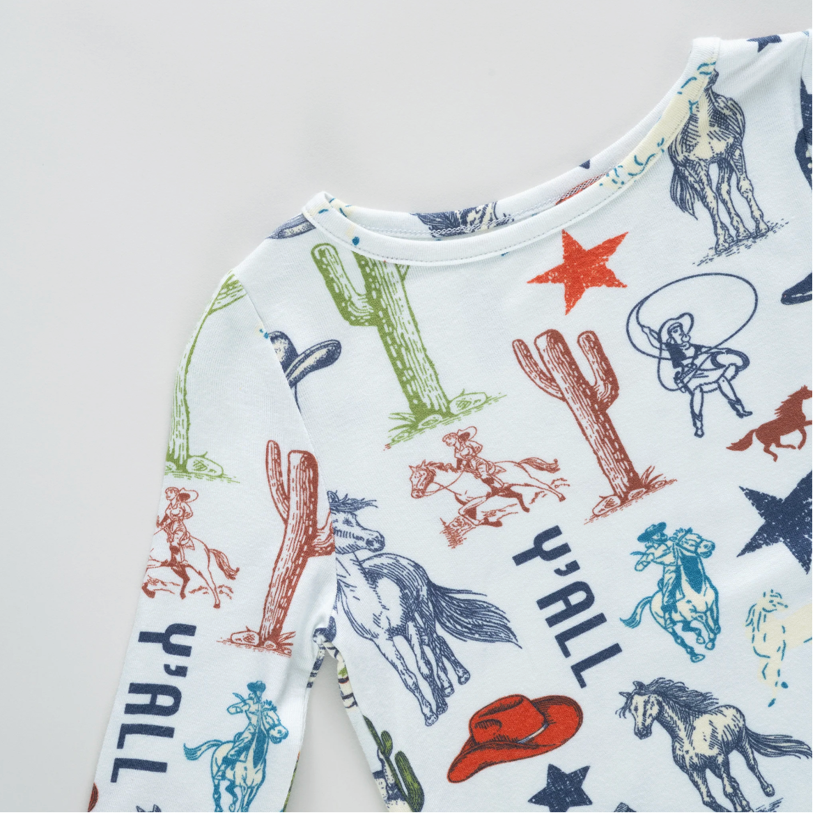 Y’all ready for bedtime? Our Kids Bamboo PJ Set rides into dreamland with our Western Dreams print, packed with playful cowboy-inspired details. This comfy two-piece set includes a long sleeve top and elastic waist pant, ideal for bedtime stories and morning cartoons. Crafted from bamboo fabric that’s unbelievably soft and breathable, these PJs keep littles comfy year-round.