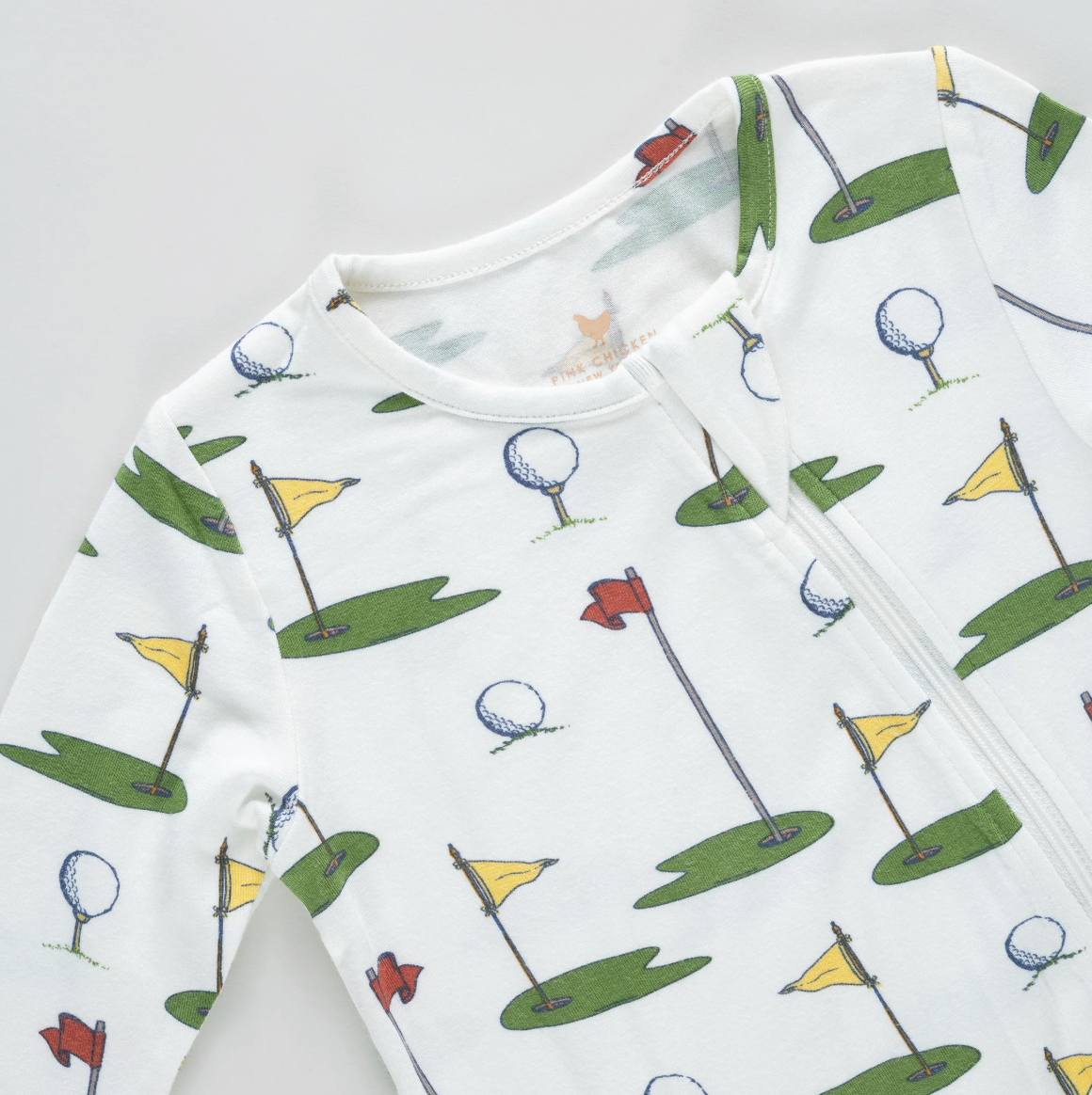 Regular price $52.00PINK CHICKEN Baby Bamboo Romper - Cream Golf Tournament