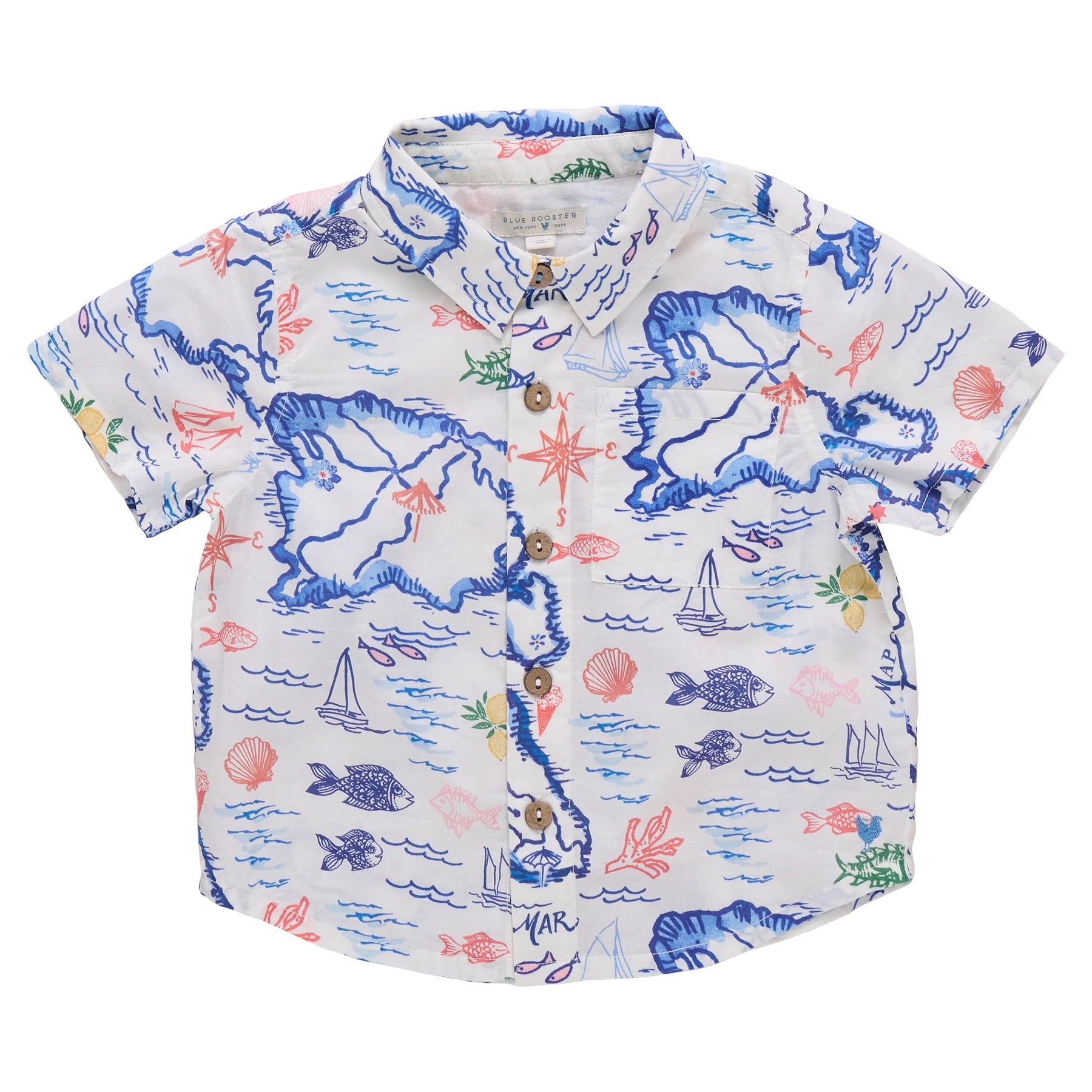 Adventure awaits! A collaboration with artist Ashley Begley, our Boys Jack Shirt sets sail in our Island Map print, complete with sailboats, coral reefs, and coastlines. With a front chest pocket, wooden buttons, and an easy fit, it’s a timeless piece made for island days and dinner under the stars. Match with baby brother in the Jack Shirt for sibling style that’s sea-worthy.