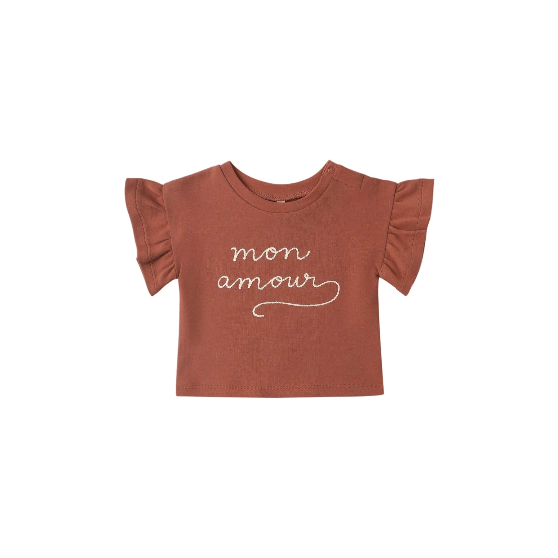 Our brushed jersey organic Flutter Tee brings comfort and style to your little's wardrobe. Featuring gathered sleeves and a snap at the collar for easy dressing.