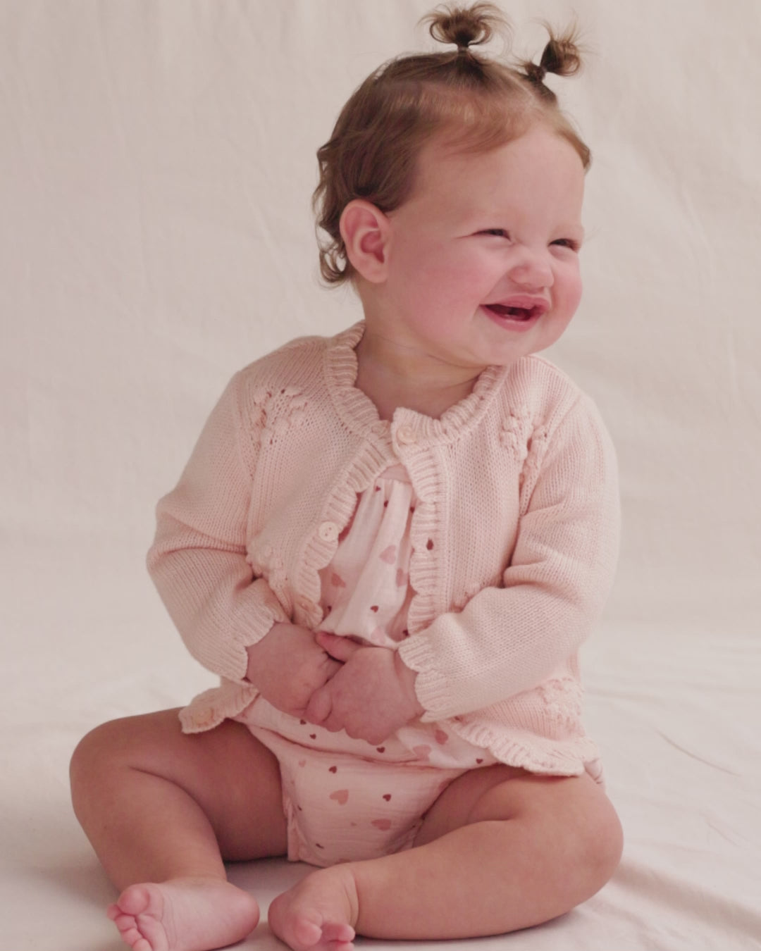 Regular price $45.00Our Knit Cardigan is in it's love era with a lovely heart bobble knit, scalloped trim, and faux shell buttons for an extra sweet look.
