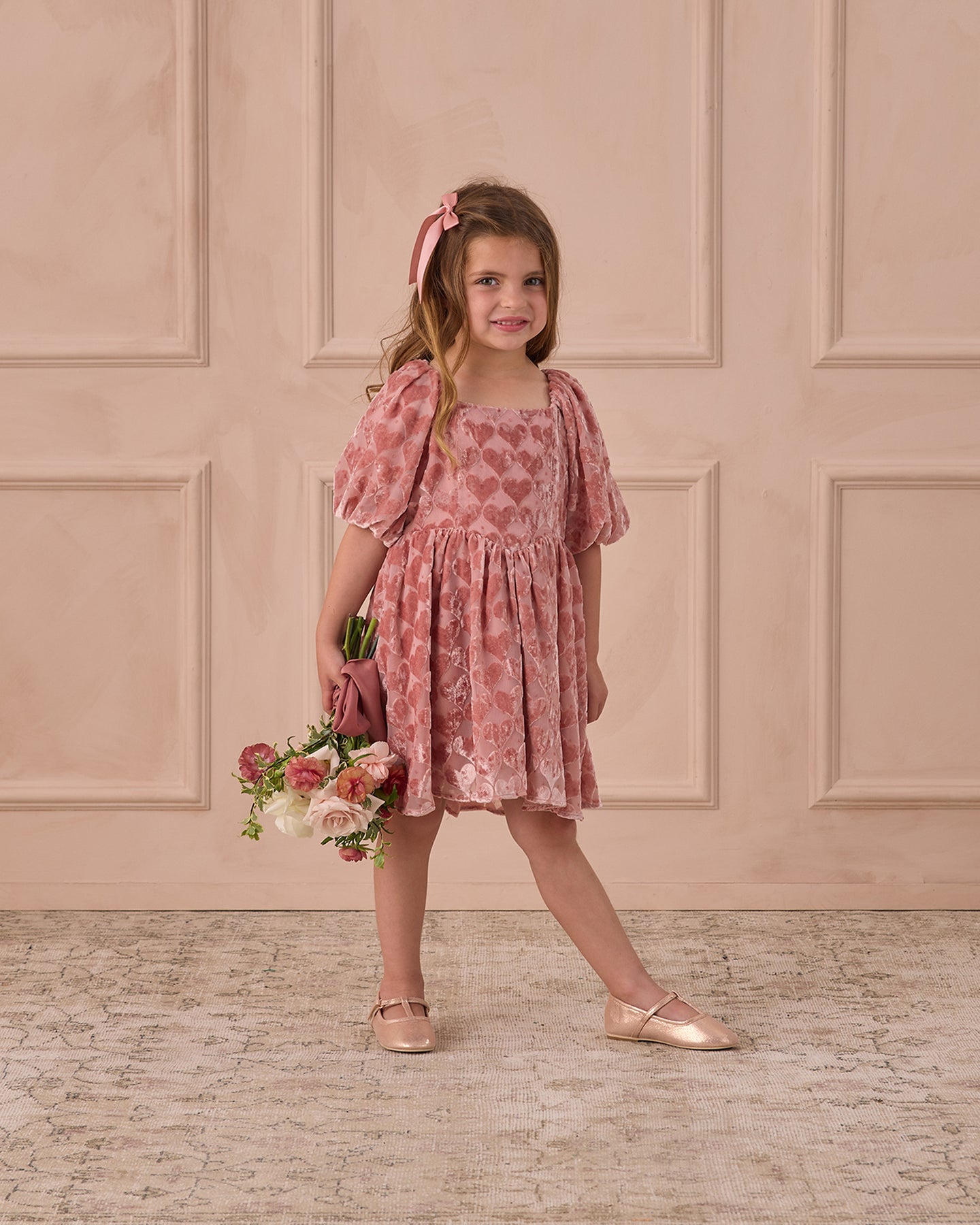 Pretty puff sleeves, a full volume skirt, and a self-tie back shoulder bow bring elegant grace to a Nina Dress.