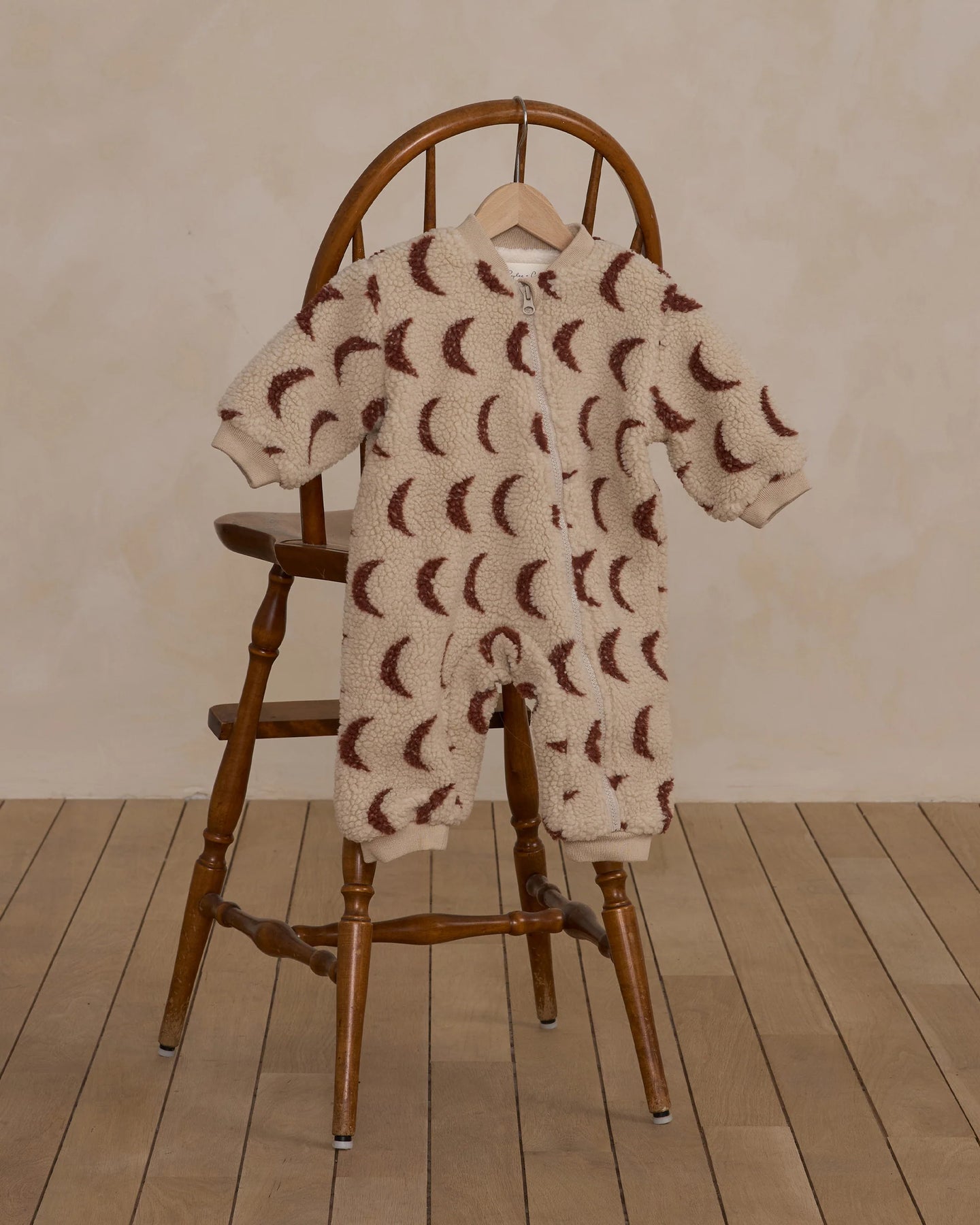 Coziest shearling jumpsuit for baby with ribbed cuffs, a silky stone liner, and metal zipper down the front. Sized for easy layering.