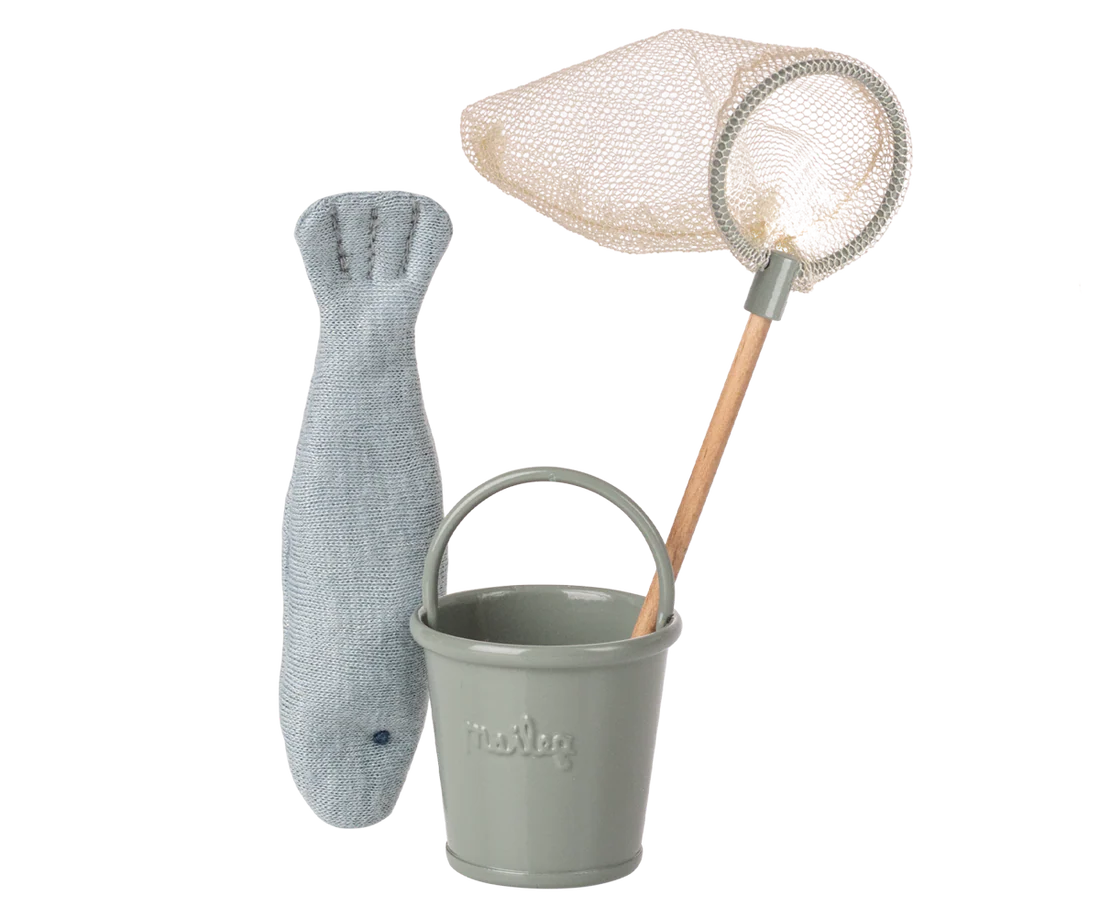 The fishing set is a great accessory for the mouse family to start a new playscene. The set includes a fishing net, fish and a bucket to carry the catch home.