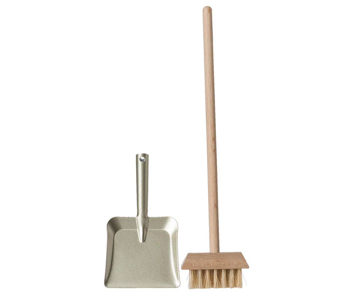 Regular price $15.00With this Miniature broom set, you are ready to clean up. The dustpan comes in a beautiful warm silver color together with the wooden broom. Fits best with micro Maileg friends.
