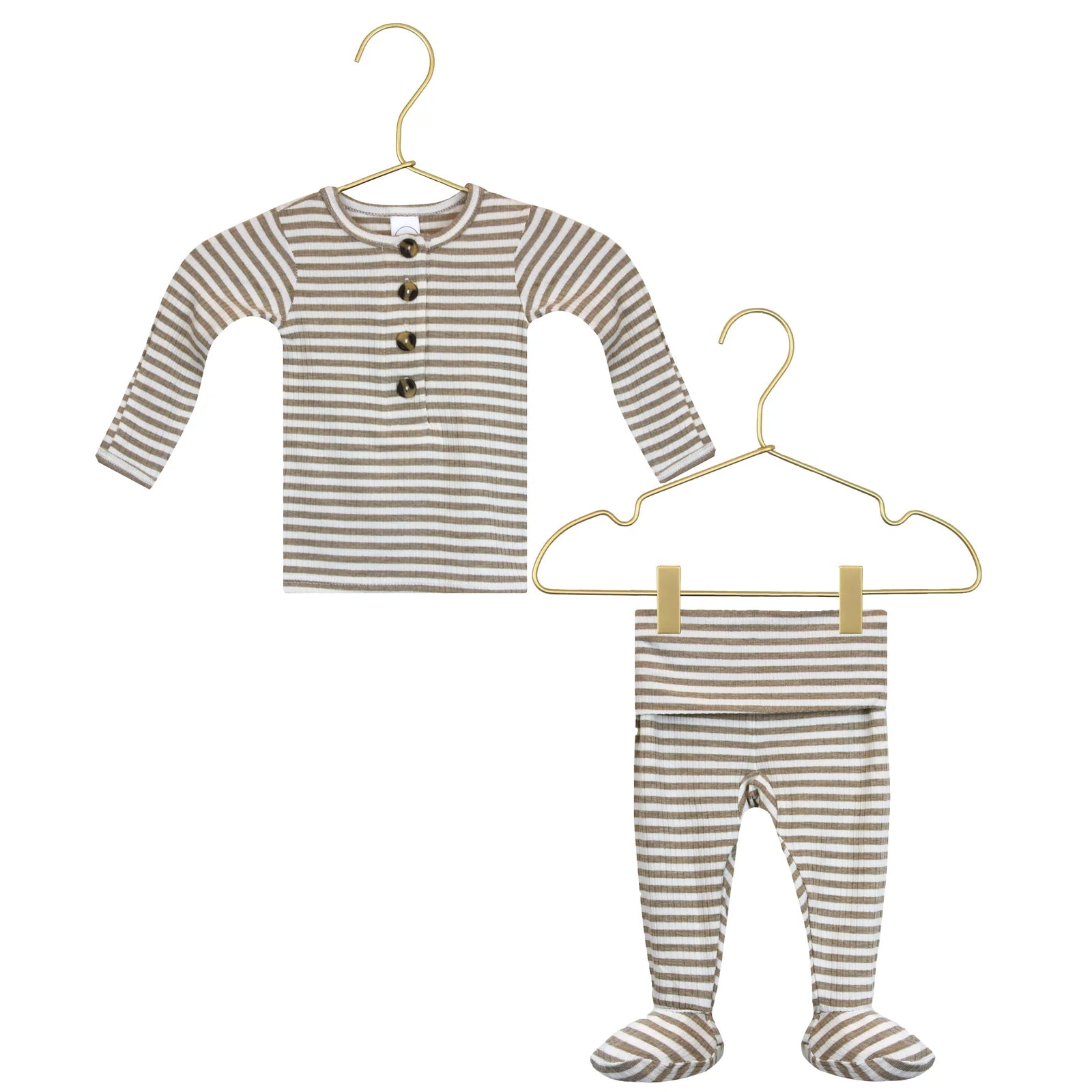 Newborn-3 Month: 6-12 pounds // 18-22” long *footie + henley with cuffs