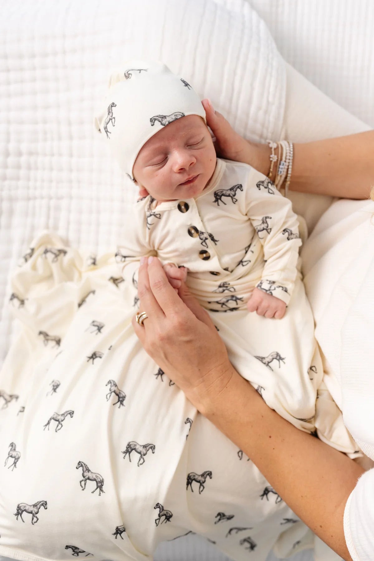 Newborn-3 Month: 6-12 pounds // 18-22” long *footie + henley with cuffs