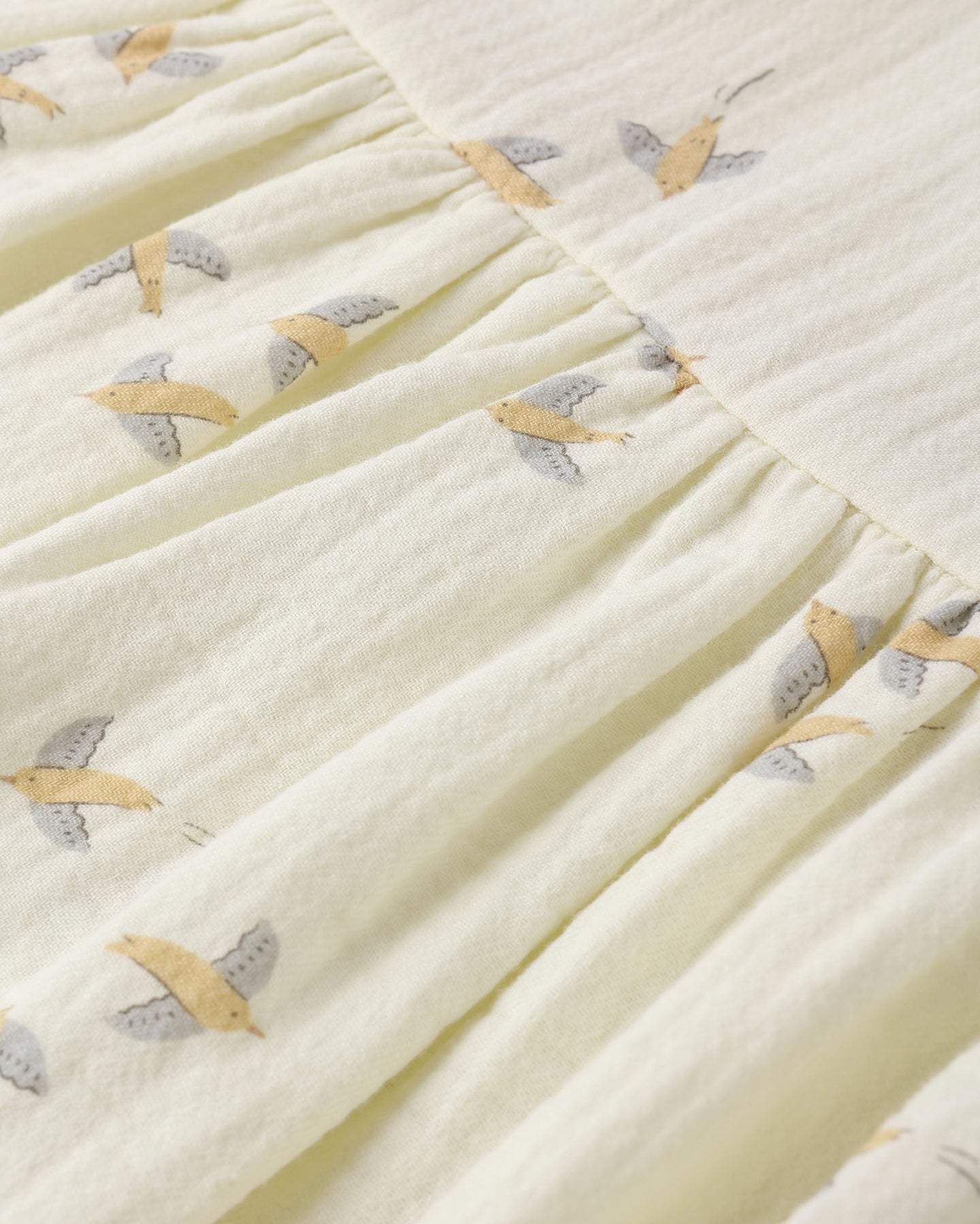 Featuring a ‘birds’ print on a ‘ivory’ hue.