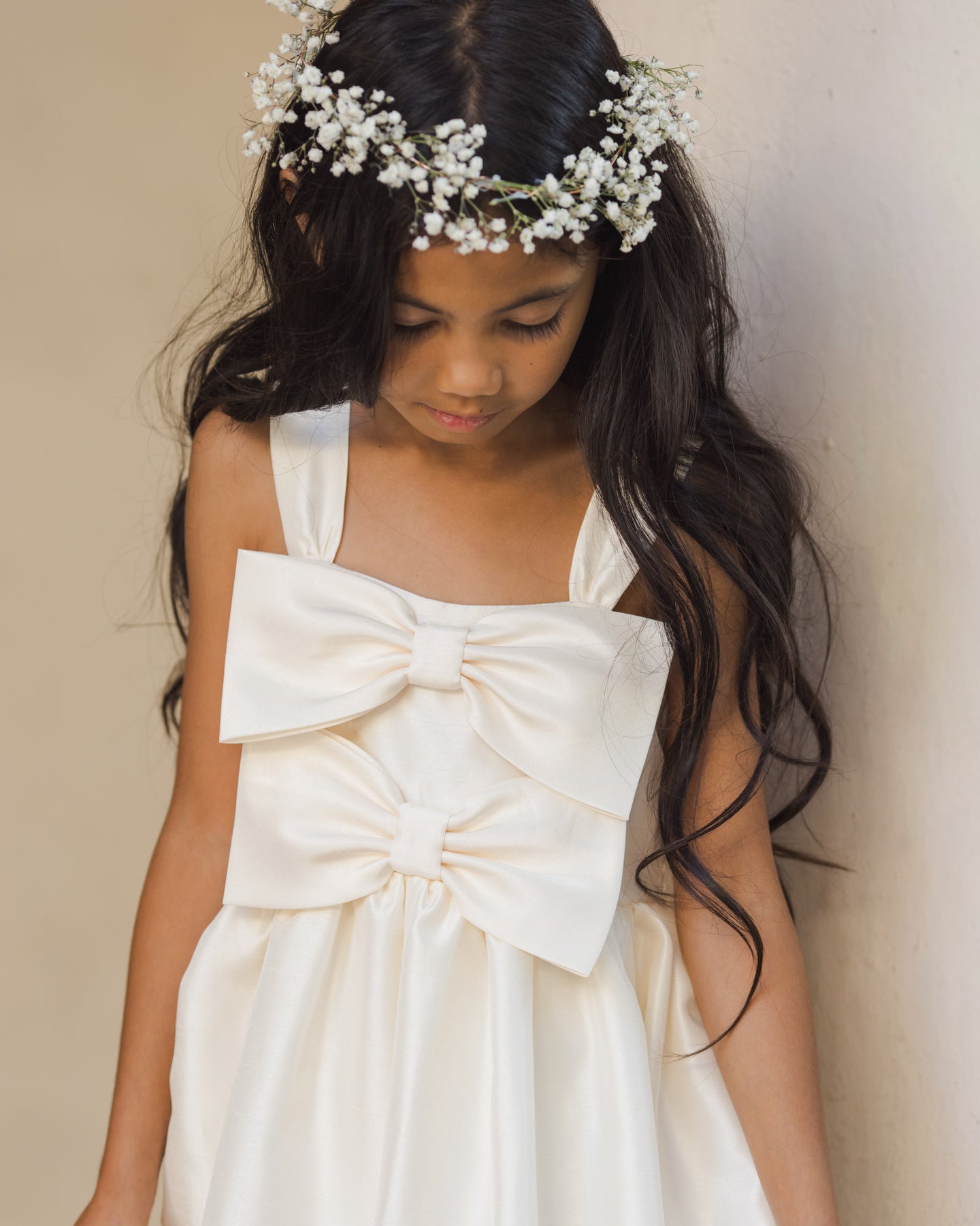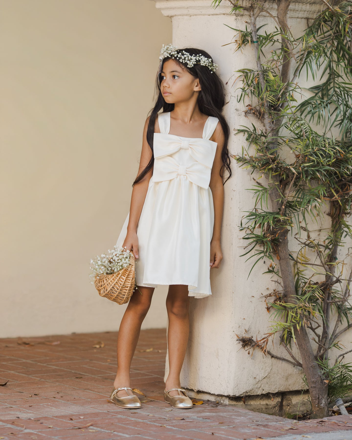 Regular price $92.00The NORALEE Cindy Dress is a charming statement piece featuring a full skirt and an oversized bow detail at the bodice. With its rich sheen and elegant silhouette, it’s designed to make every occasion feel extra special.